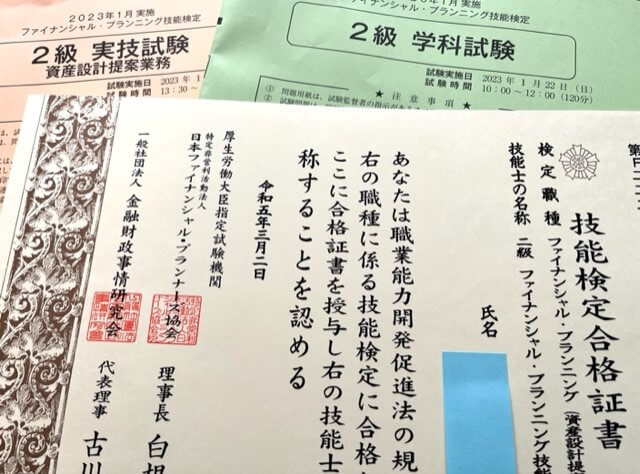 2級ファイナンシャル・プランニング技能検定に合格しました。